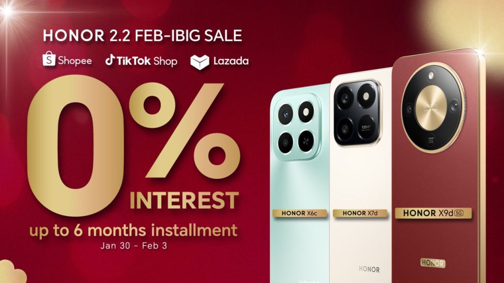 Shop now via HONOR official stores; Shopee: https://bit.ly/HONORxShopee22AllOutMegaCarPanalo, Lazada: https://bit.ly/HONORxLazada22FebIbigSale, TikTok: https://bit.ly/HONORxTiktokShop22DoubleUpSale.