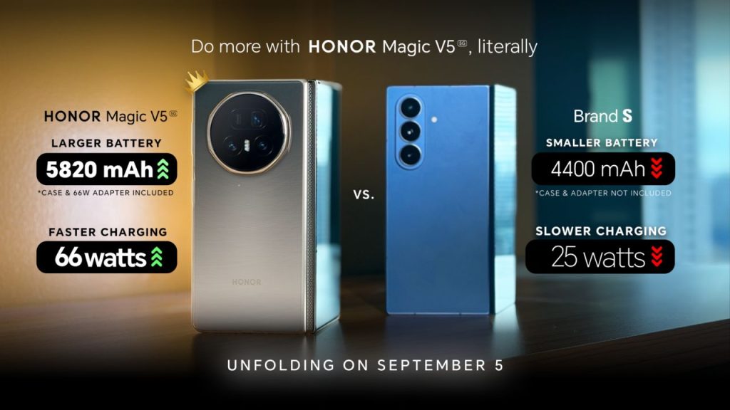 Manila, Philippines, September 2, 2025 – Leading smart devices provider HONOR Philippines is gearing up for the arrival of its newest and thinnest foldable phone – the HONOR Magic V5! Coming this September 5, HONOR Magic V5 sports the biggest battery out of all its counterparts in the market to date. Catch the launch live on Facebook: https://bit.ly/MagicV5Launch_FB.